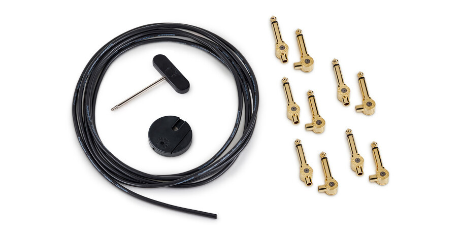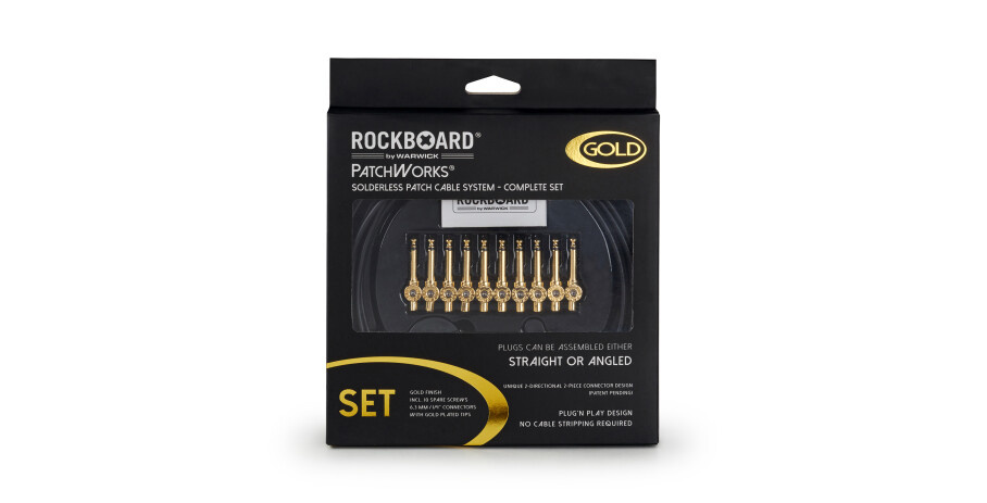 Het RockBoard® PatchWorks Solderless Patchkabelsysteem heeft het eerste echte 2-directionele, 2-delige soldeerloze plugontwerp op de markt en het is ontworpen en ontwikkeld in Duitsland. De pluggen zitten altijd goed, omdat je ze makkelijk van recht naar haaks en andersom kunt verdraaien. Het gepatenteerde, makkelijk mee te werken ontwerp heeft een tweedelige plug en een compact ontwerp om ruimte op je bord te besparen. De pluggen zijn recht en haaks bruikbaar, door simpelweg een van de delen 90 graden te verdraaien. Met professionele kabels van hoge kwaliteit en connectors met vergulde contacten, geeft de RockBoard® PatchWorks alles wat je wenst voor je hi-fi pedalenbord. Maak je eigen patchkabels in exact de juiste lengte, waardoor je minder signaalverlies hebt en geen lastige, te lange kabels.
